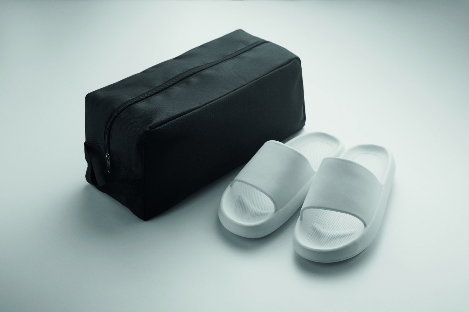 Cipőtáska 600D RPET poliészterből, oldalsó fogantyúval, cipzárral.