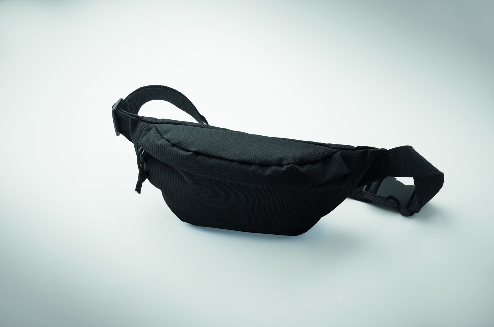 Övtáska 600D RPET poliészterből, cipzáras fő rekesszel és rejtett cipzáras hátsó rekesszel.