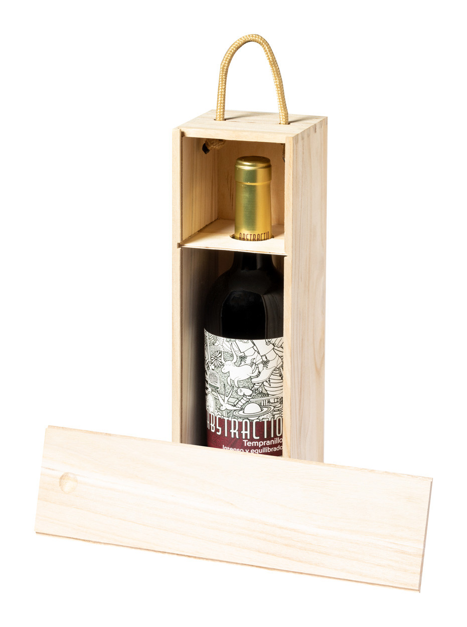 Fa ajándékdoboz 1 borosüveghez, zsinóros fogantyúval.