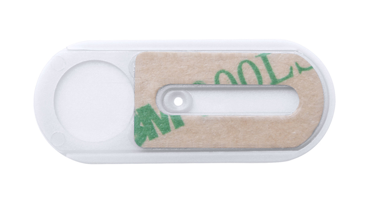 Antibakteriális műanyag webkamera lefedő, csúsztatható takaró résszel és öntapadós rögzítéssel. ISO 22196 szabványnak megfelel.