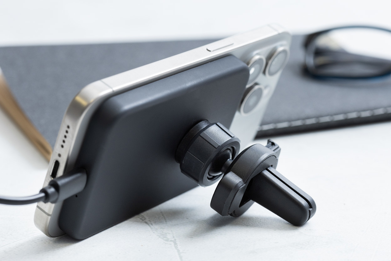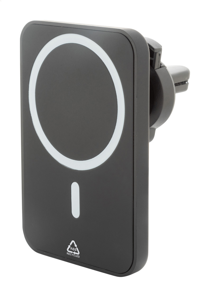 Mágneses autós mobiltartó újrahasznosított ABS borítással, beépített vezeték nélküli gyorstöltővel (15W) és állítható rögzítéssel. Öntapadós fémgyűrűvel, amellyel bármilyen vezeték nélkül tölthető eszközön használhatja a mágneses funkciót. Kompatibilis az iPhone® 12 vagy újabb készülékekkel. USB töltőkábellel.