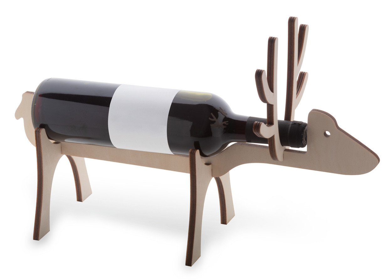 Rénszarvas formájú, rétegelt nyírfából készült bortartó állvány. Lapra szerelve szállítjuk.