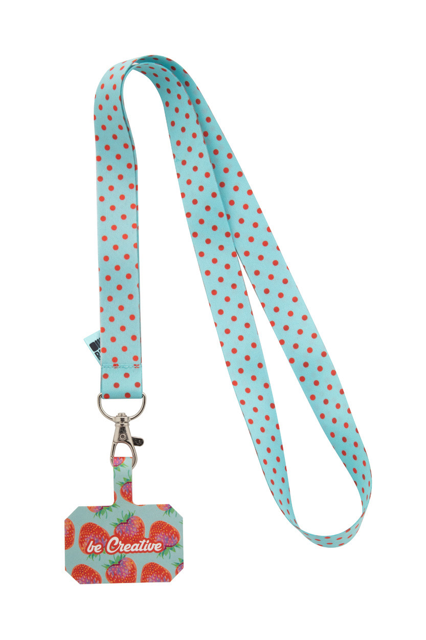 Egyediesíthető, RPET anyagból készült mobiltartós nyakpánt fém karabinerrel és full colour emblémázású mobiltartóval, szakadásmentes papírból. Mindkét oldalán szublimációs eljárással emblémázva. Minimális rendelési mennyiség: 100 db.