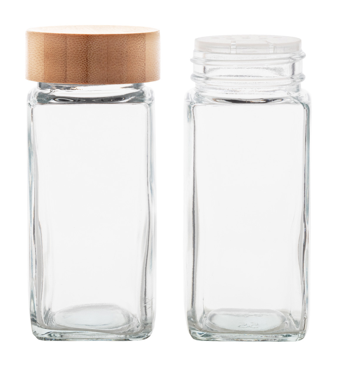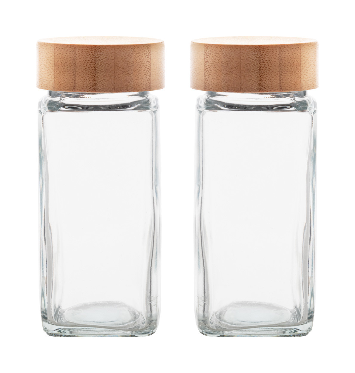 2 db-os üveg fűszertartó szett bambusz fedővel, 120 ml. Kraft papír dobozban.