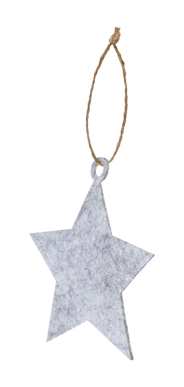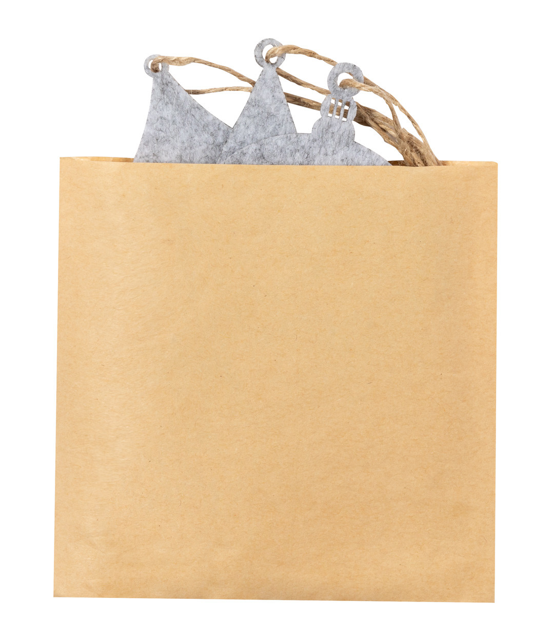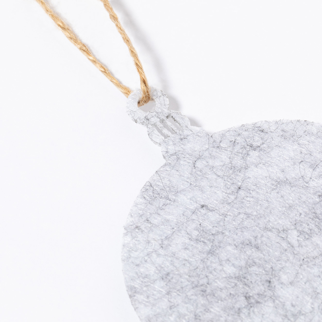 3 db-os filc karácsonyfadísz szett juta zsinórral. Gömb, csillag és karácsonyfa formájú díszeket tartalmaz.