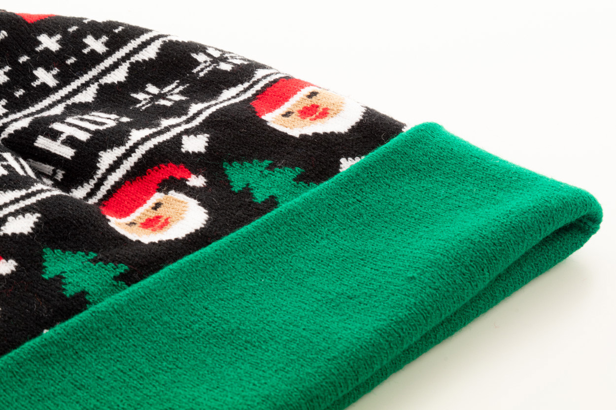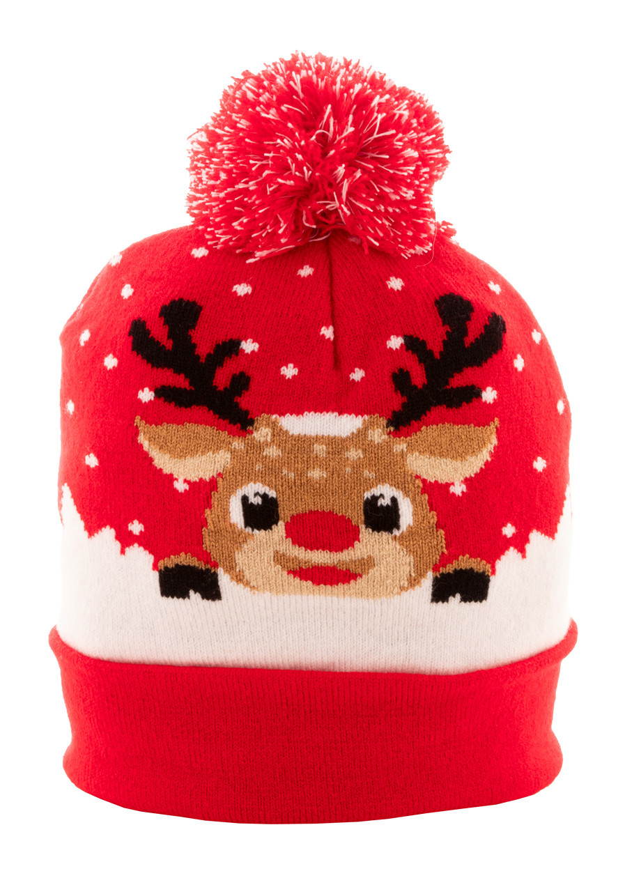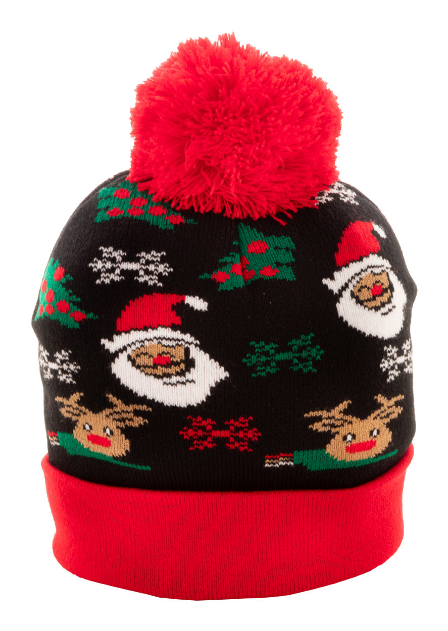 Kötött karácsonyi téli sapka akrilból, pom-pommal.