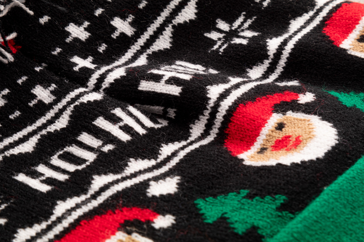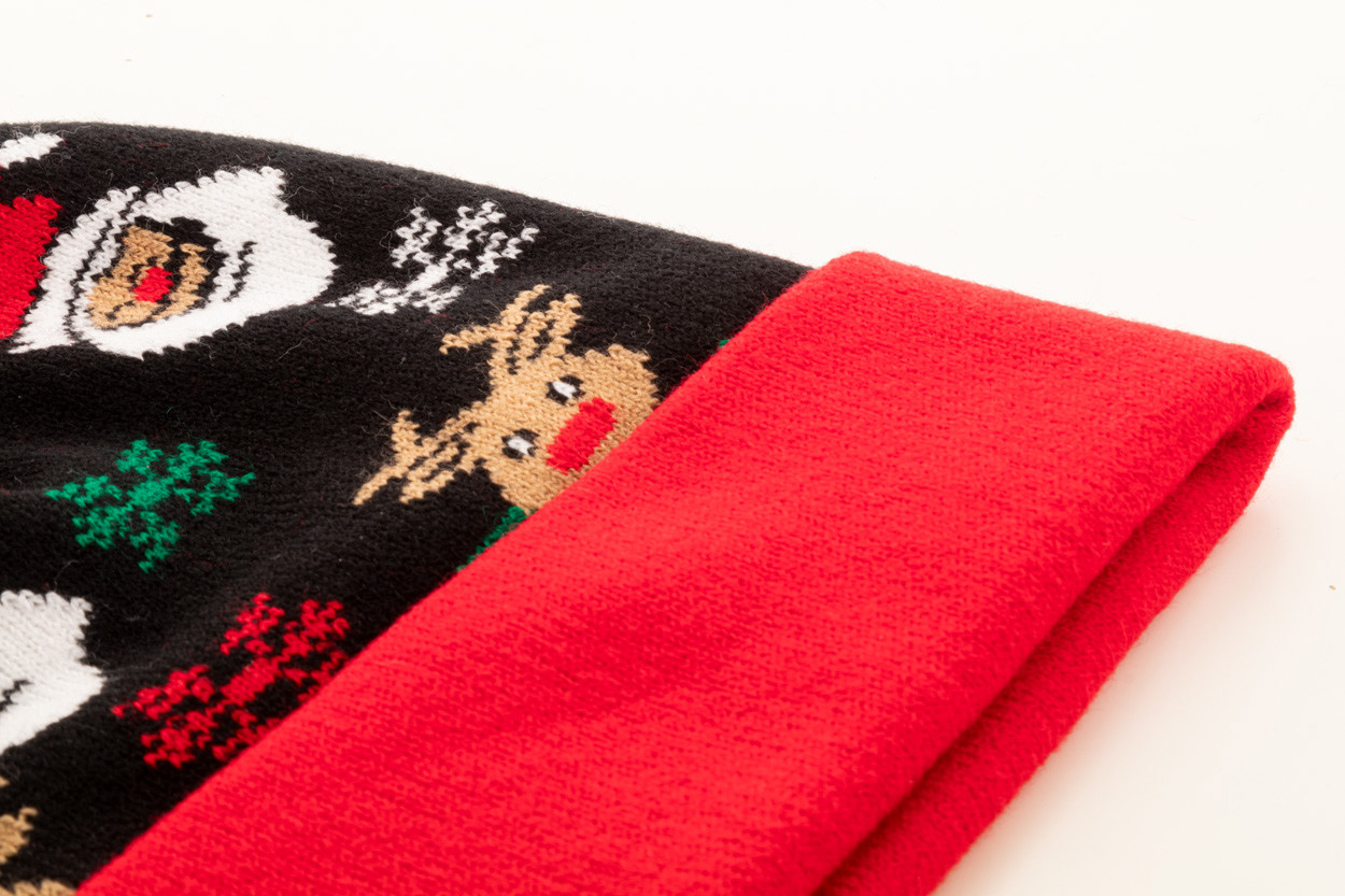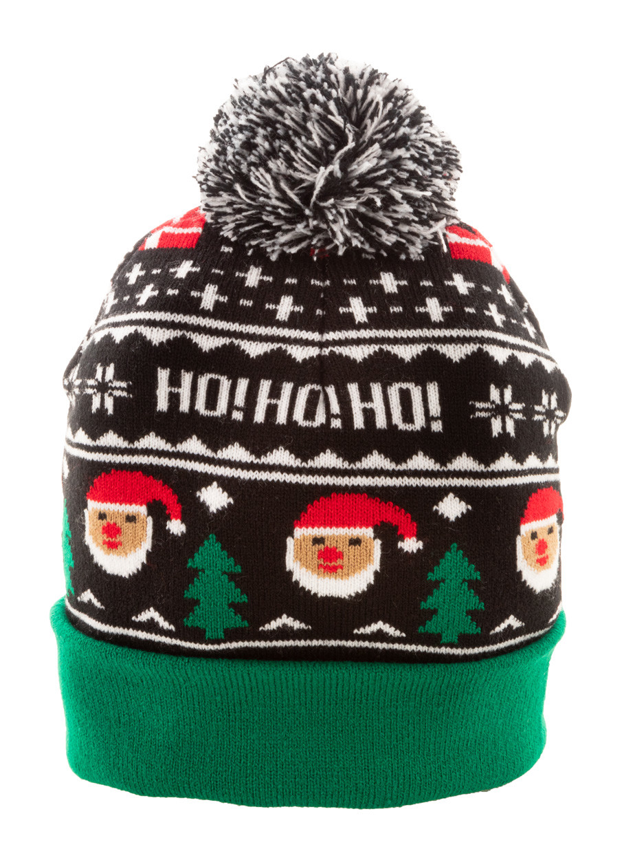 Kötött karácsonyi téli sapka akrilból, pom-pommal.