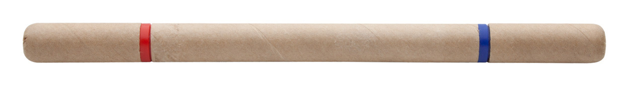 Újrahasznosított anyagból készült, két végű golyóstoll, kék és piros színű tollbetéttel.