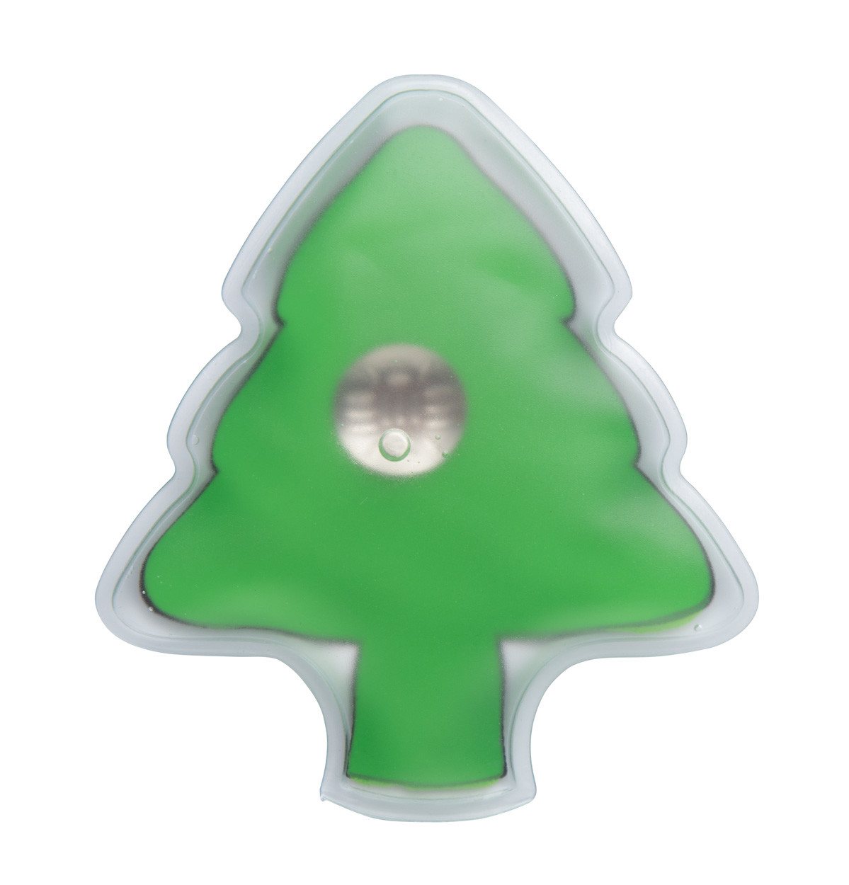 Karácsonyfa alakú, többször használható melegítő tasak.