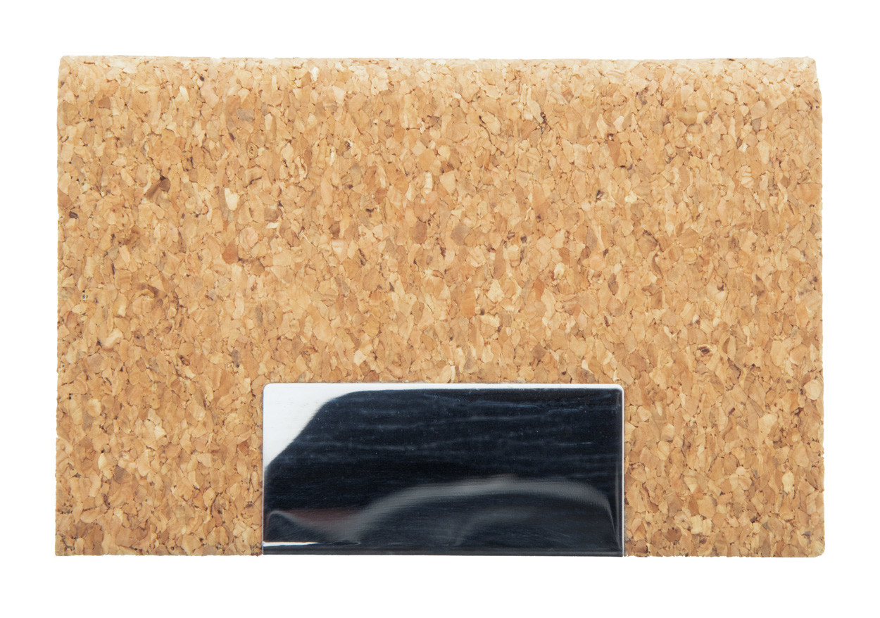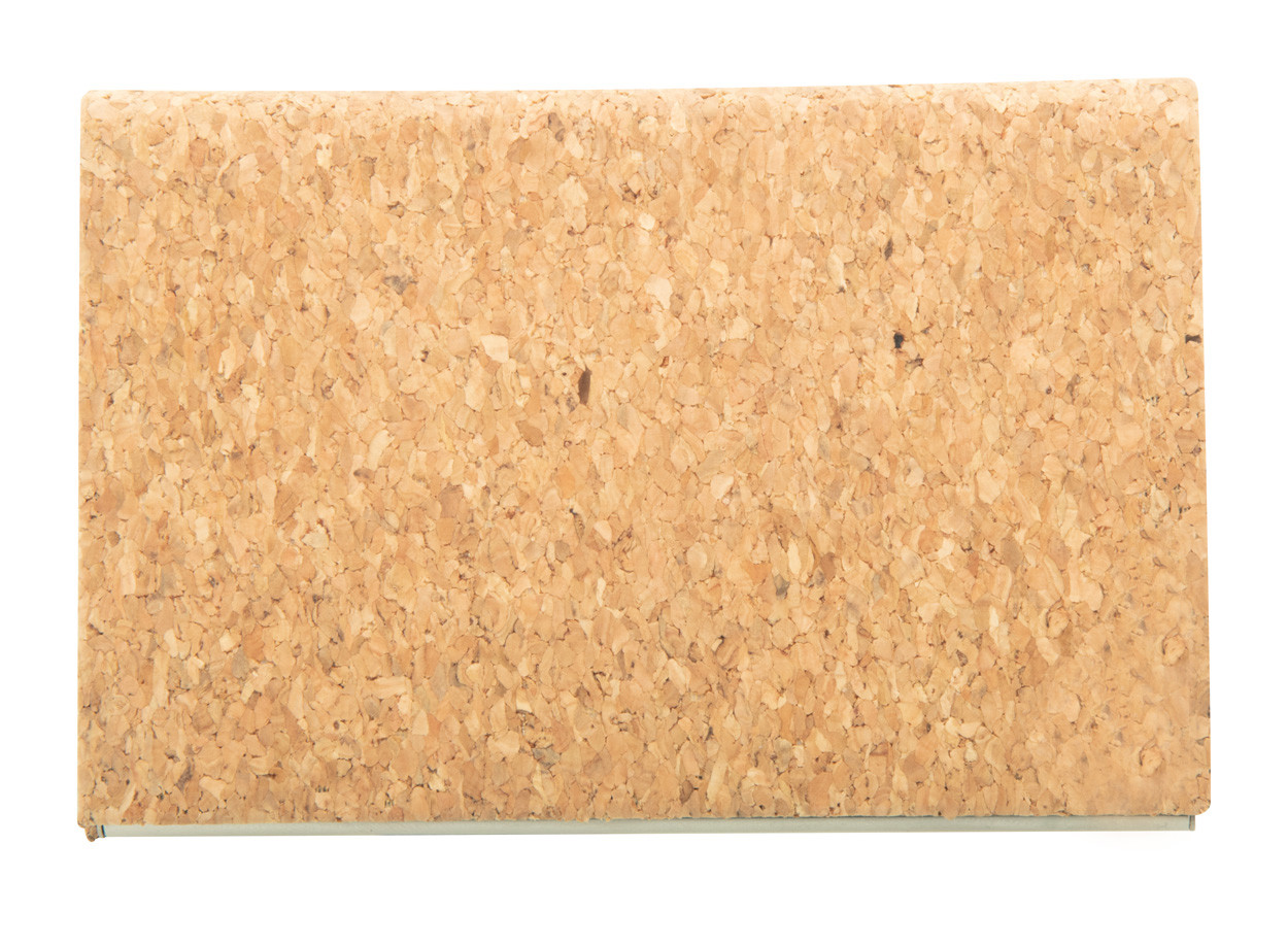 Természetes parafa borítású fém névjegykártyatartó.