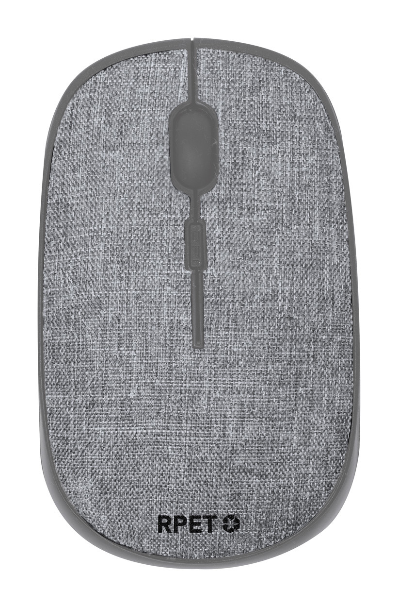 Vezeték nélküli optikai egér RPET poliészter borítással. 1 db AA elemmel működik, elem nélkül szállítjuk.