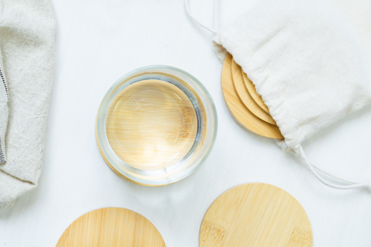 6 db-os kerek bambusz poháralátétszett zsinóros pamut tasakban.