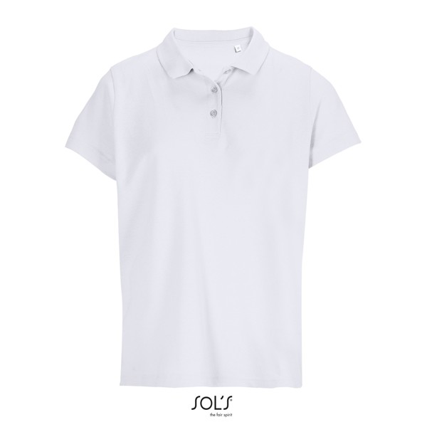 SOL'S PULSE WOMEN POLO, női póló, 100% gyűrűsfonalú fésült pamut, újszerű szabás, bordázott gallér, nyakszalag, megerősített gombos záróvonal, rövid ujjak, tónusos 3 gombos záróvonal, egyenes szegély, szabás és varrás, tartalék gomb a belső oldalsó varráson. A méretek illeszkedéséről, kérjük, tekintse meg a termékdokumentációban található mérettáblázatot.