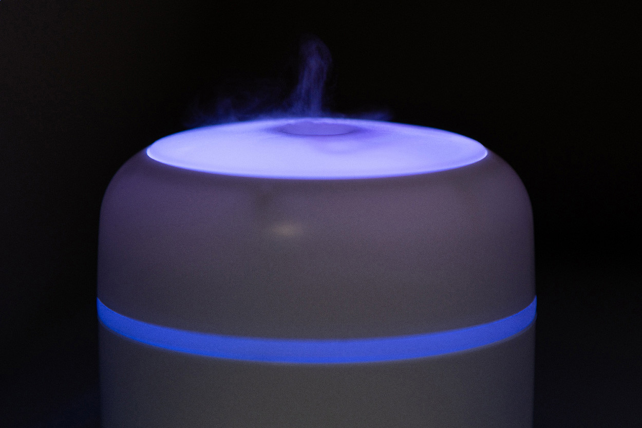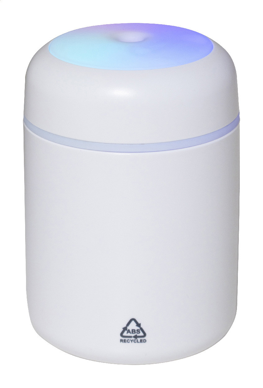 Újrahasznosított ABS műanyag asztali párásító többszínű LED lámpával. USB töltőkábellel. Tartály kapacitása: 280 ml.