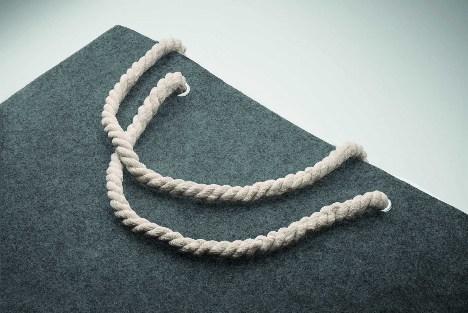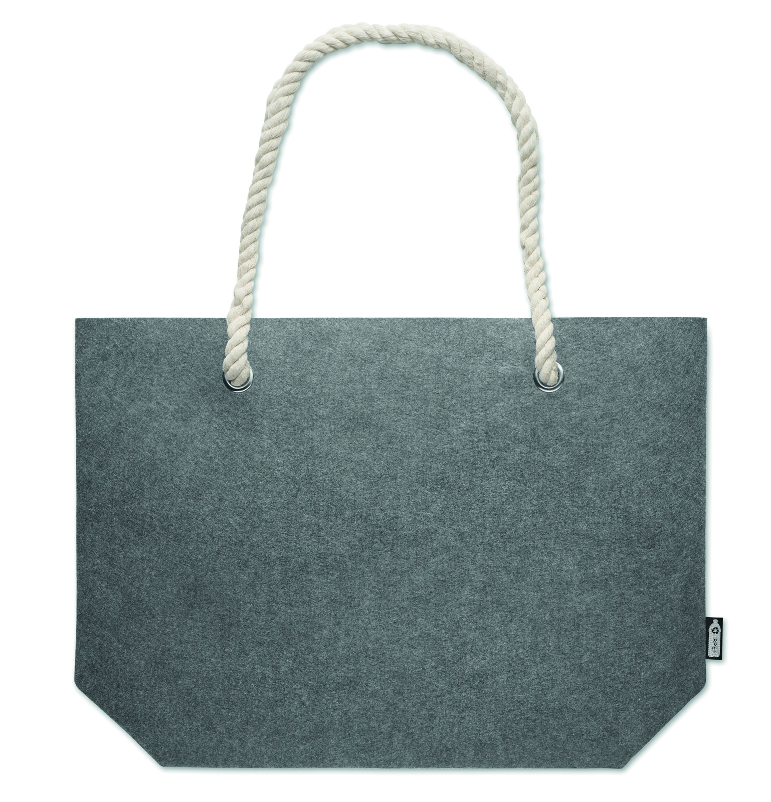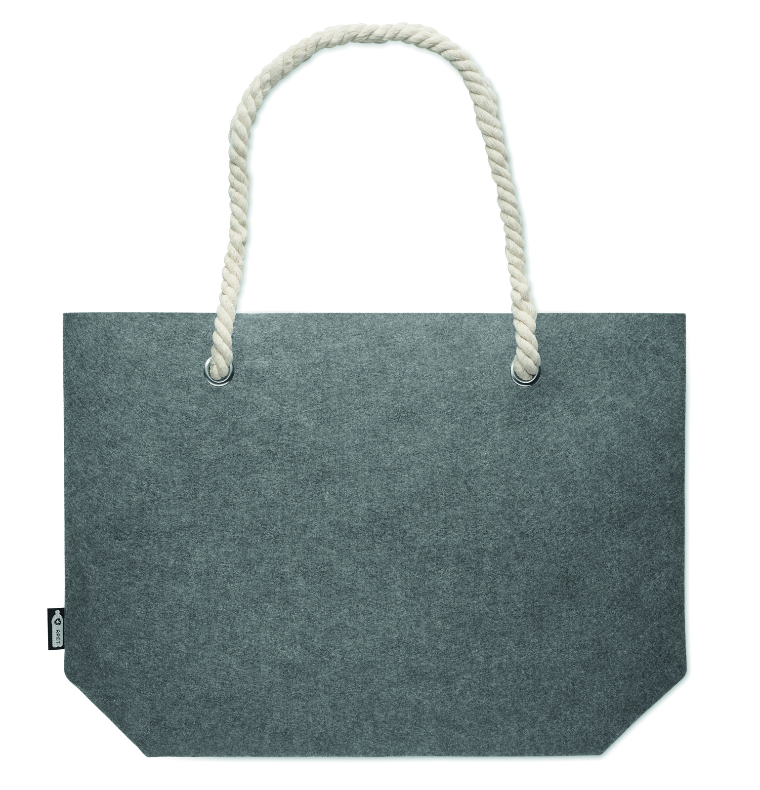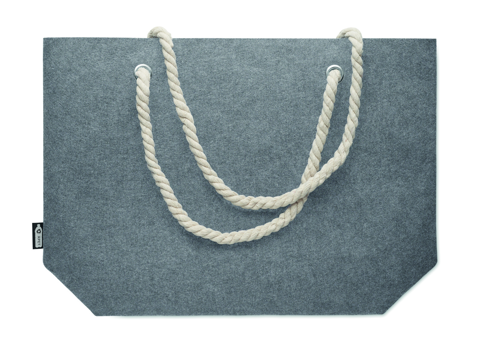 RPET filcből készült strand- vagy bevásárlótáska kötél fülekkel. Anyagvastagság: 2 mm.