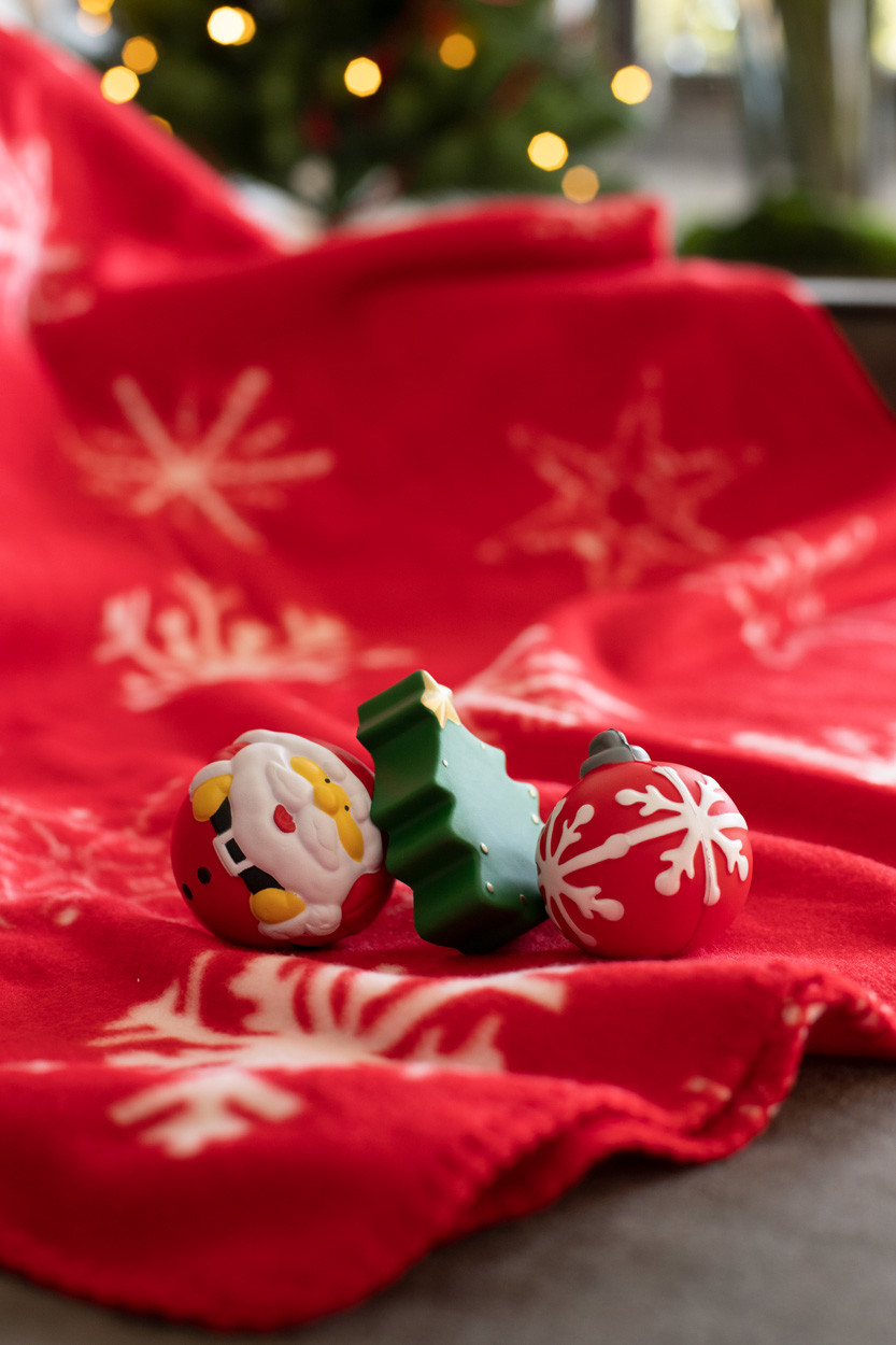 Karácsonyfadísz formájú stresszlabda.