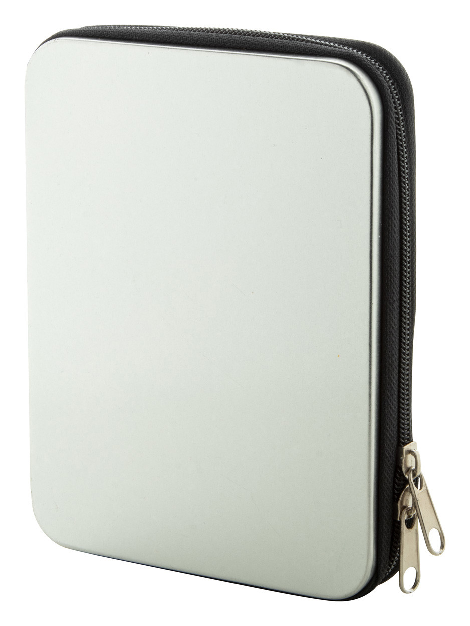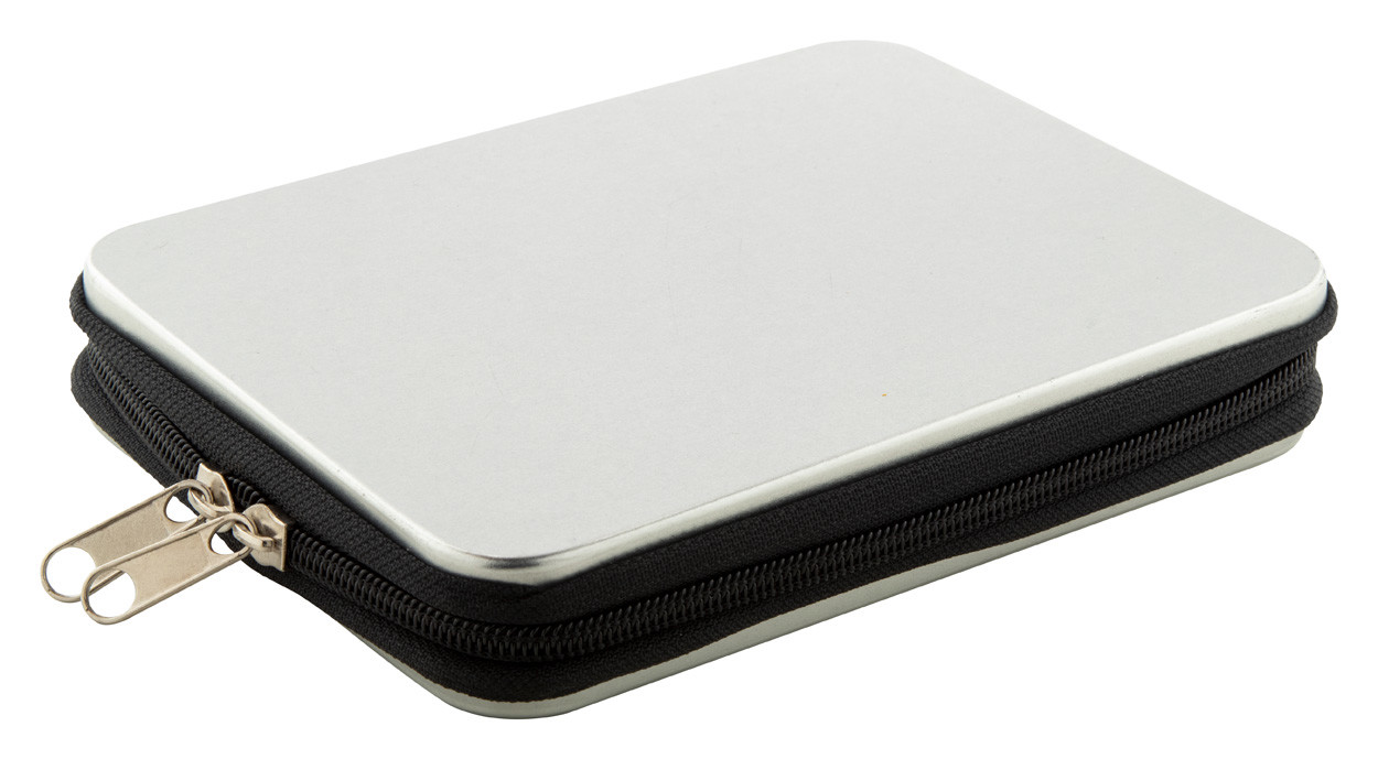 25 darabos fém kulcskészlet cipzáras alumínium tokban. A szett tartalmaz orrfogókat, oldalcsípőfogókat, hosszabbítót, csipeszt, 6 precíziós csavarhúzót, 4 db anyacsavaros készletet, 10 db-os csavarhúzó készletet.