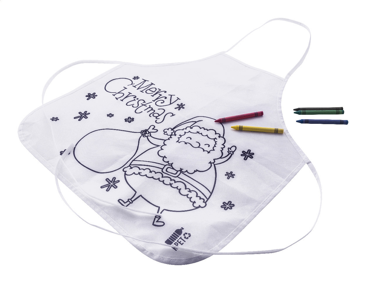 Karácsonyi színezhető kötény gyerekeknek RPET non-woven anyagból, 5 db zsírkrétával.