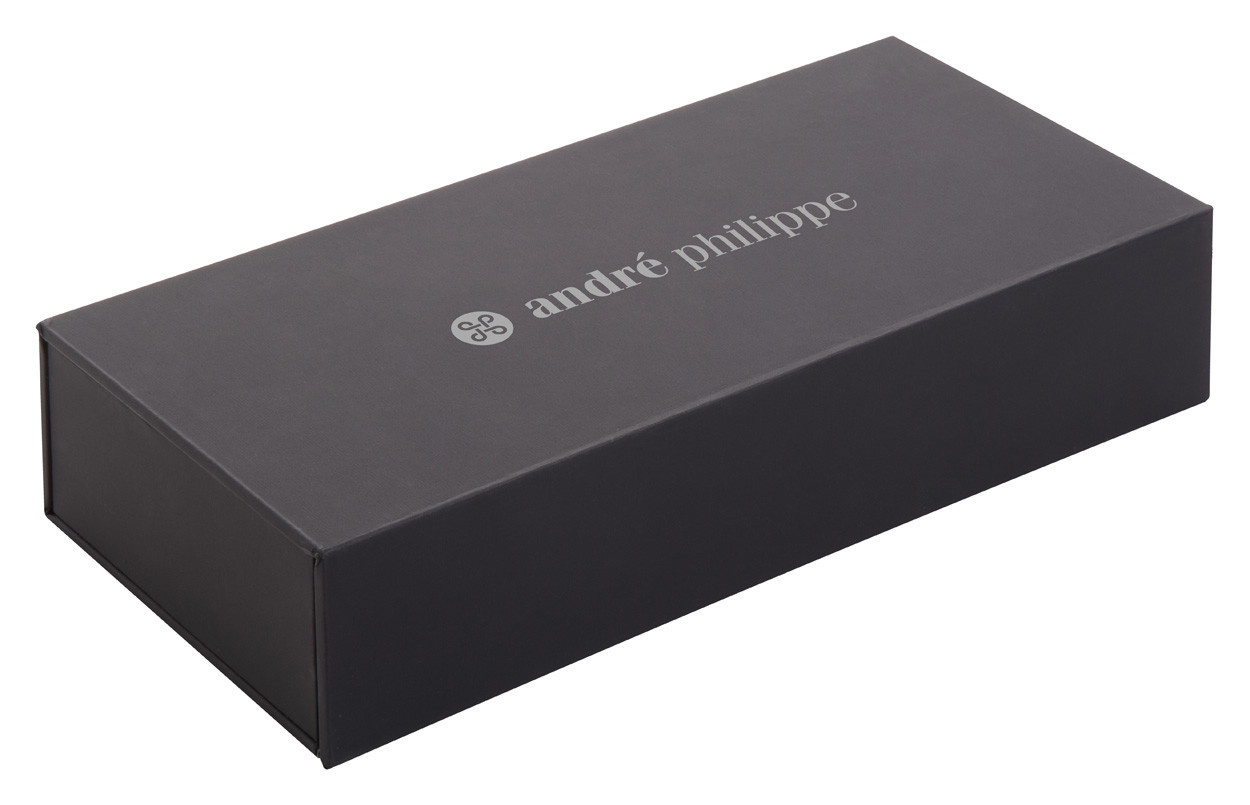 Elegáns, fém golyóstoll és rollertoll szett rózsafa testtel. Fekete díszdobozban, kék tollbetéttel szállítjuk. André Philippe márkatermék.