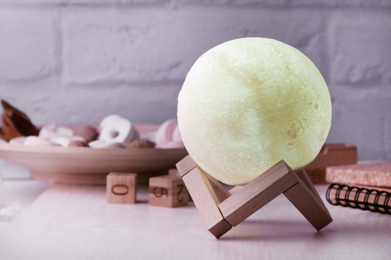 Hold formájú vezeték nélküli hangszóró beépített újratölthető akkumulátorral és fa állvánnyal. LED fénye állítható. USB töltőkábellel szállítjuk.