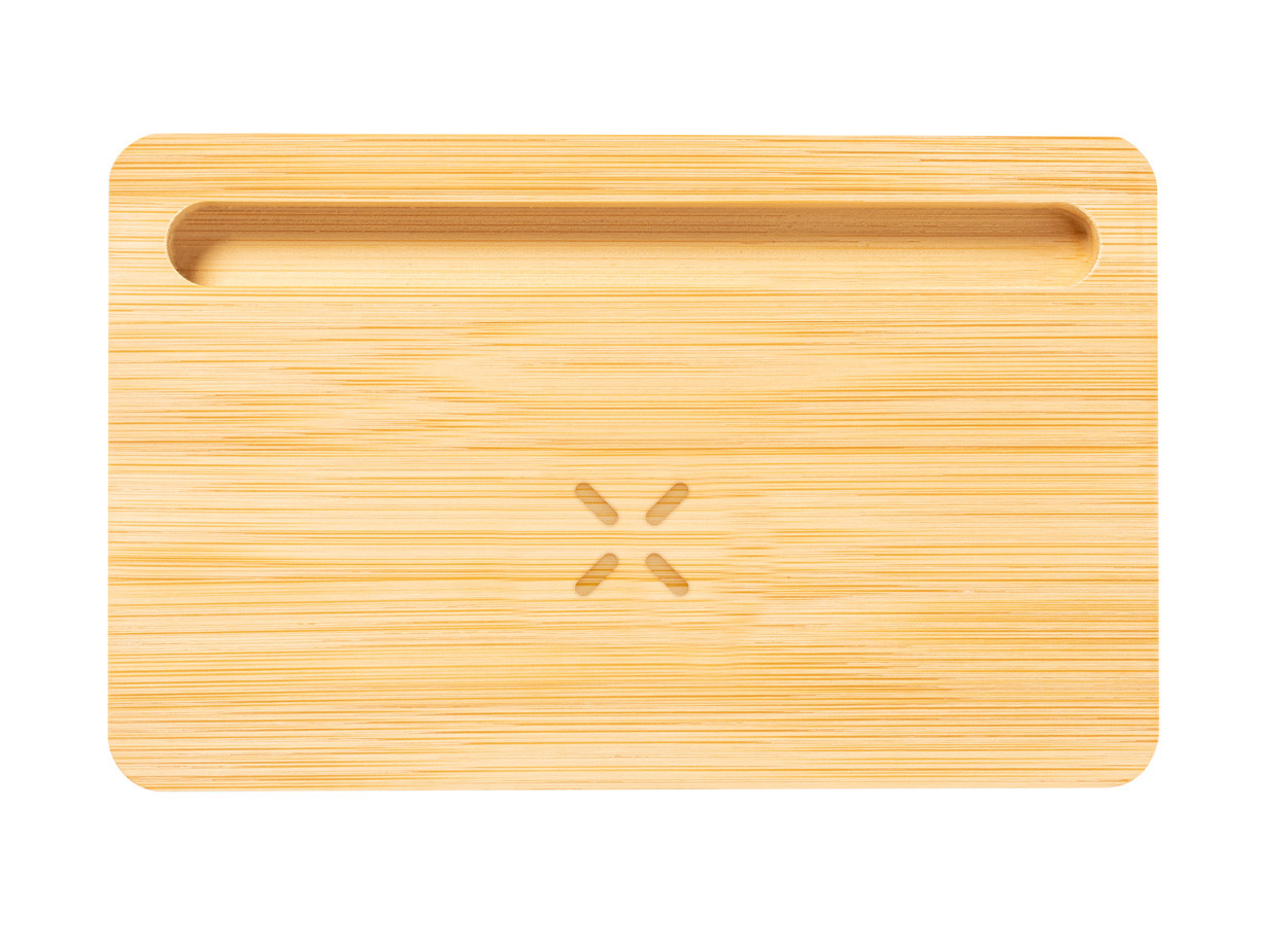 Bambusz asztali rendszerező és mobiltelefon-tartó, beépített vezeték nélküli töltővel (15W). USB töltő porttal, mely egyszerre 2 eszközt képes tölteni (1 vezeték nélküli, 1 vezetékes). Max. kimenet: 2000 mA. USB töltőkábellel szállítjuk.