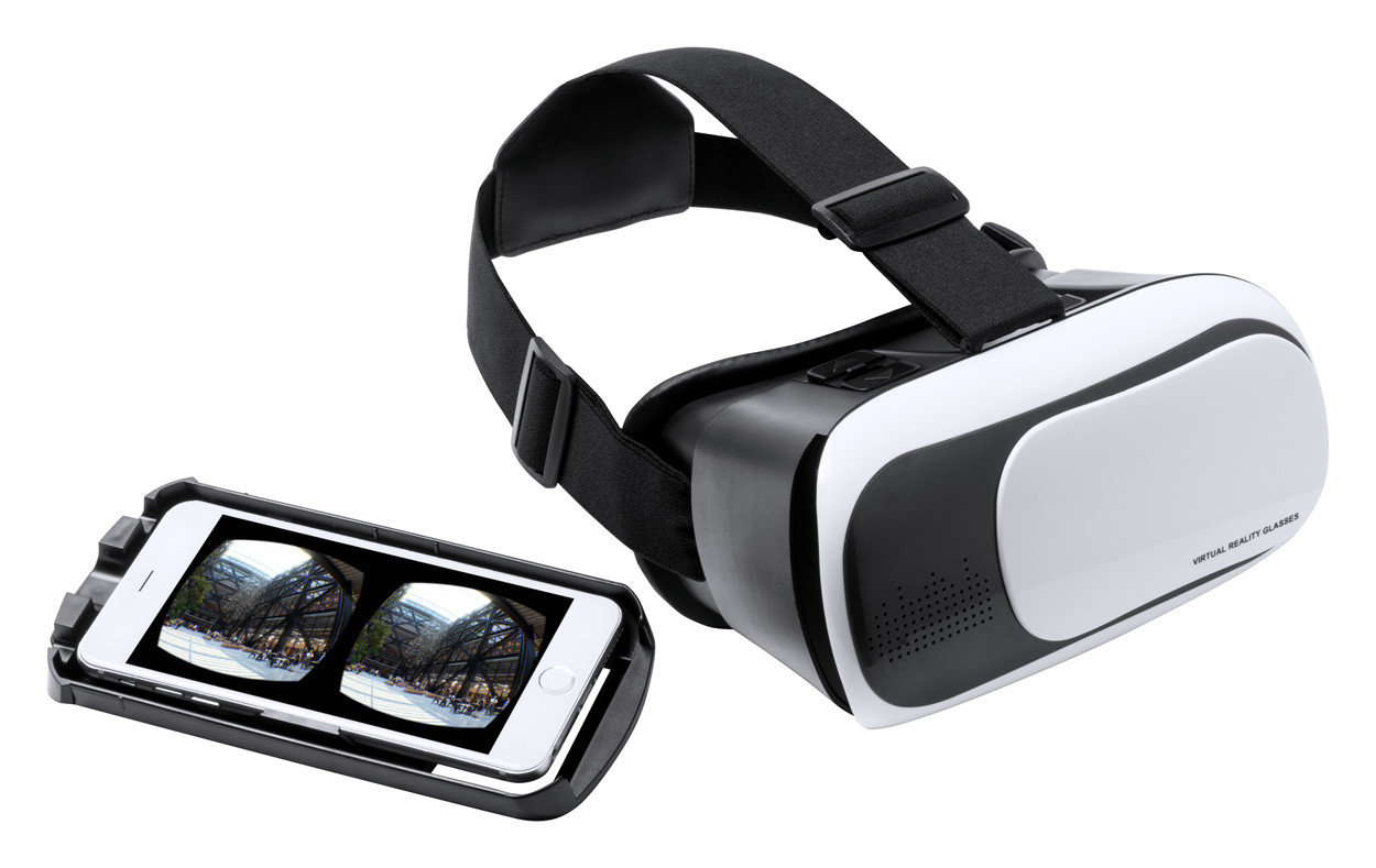 Műanyag virtual reality headset állítható lencsékkel, rugalmas pánttal és univerzális telefontartóval. Támogatott okostelefon kijelző méret: 4.5-6.5".